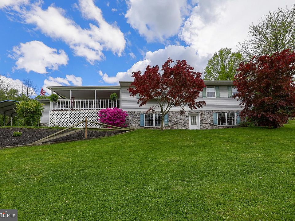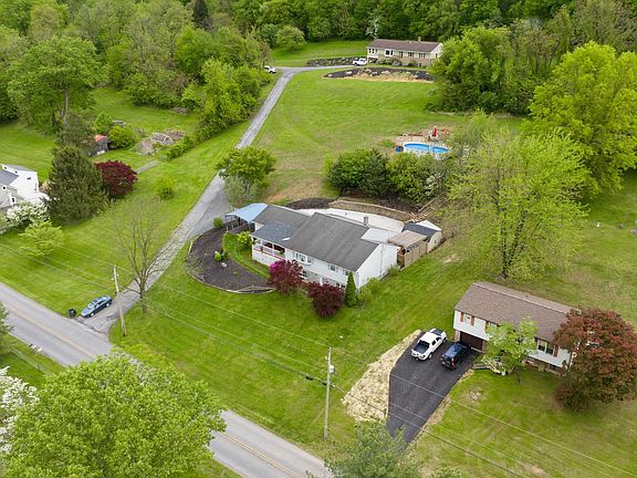 Raised ranch style home has convenient one-story living with kitchen, laundry, and primary suite all on the main level. Open concept floor plan features a large family room, spacious updated kitchen with ample granite counter space, dining area, and access to multiple outdoor living spaces. The front of the house offers a covered porch with incredible views, and the private rear deck — covered by a pergola —is home to the relaxing hot tub. Stairs lead to an elevated, heated pool that looks over the quiet country setting with gorgeous views of the valley and surrounding farms and woods. In addition to the two finished levels of living space and multiple outdoor living area, there is tons of storage and parking provided by an attached 2.5 car garage, 2 space carport, and enough additional parking area for multiple vehicles or room for an RV or boat.