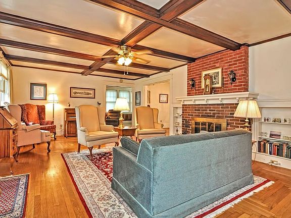 This 7 room Colonial is loaded with character and charm! It has the look and feel of an English cottage. The 1st floor features an extra large living room with beautiful beamed ceilings and a large wood-burning fireplace with built-ins. Also on the 1st floor, a cozy sun-room with built-ins and available French doors, a formal dining room and an eat-in kitchen. Beautiful patterned hardwood floors throughout this home. Anderson double pane windows, attic completely insulated, replaced interior walls and insulation on the first floor. One-car detached garage with electricity, auto door opener & phone jack. The garage is in need of a new roof. Lovely level corner lot with patio & apple trees. Brand new septic. Short distance to major highway. Great opportunity for the first-time buyer!" Showing begin at Open House Sunday 08/18.
