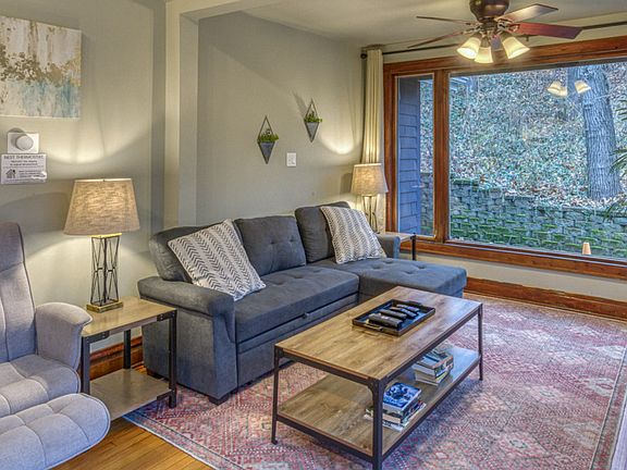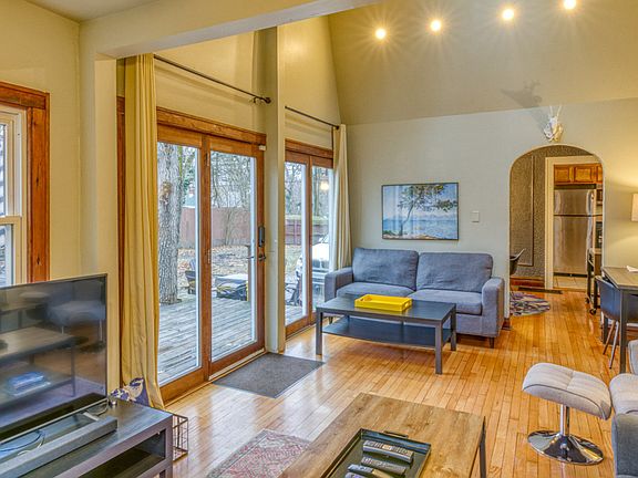 Camp Baxter is a charming 2-bedroom, 1-bath cottage nestled in a tranquil wooded area near the Indiana Dunes National Park in Miller Beach. This newly renovated 1920s cottage is perched on the side of a dune and boasts Smart Home technology, modern conveniences, and abundant amenities both inside and out. Enjoy the natural surroundings from the spacious, multi-level outdoor living spaces featuring a 6-person hot tub, firepit with provided firewood, outdoor dining area, and seasonal cushioned lounge furniture. The property is surrounded by a 6-foot tall perimeter fence for ultimate privacy. Parking is available for up to four vehicles, although the garage is not accessible to guests. The cottage offers a small but fully functional kitchen, a separate dining room with a table that flips to reveal a poker top, a cozy lower-level media room, and a vaulted, skylighted living room with large windows and glass patio doors that open to a 700 sq. ft. outdoor living space. The marble-tiled bathroom features heated floors and a jetted tub with a heated ledge seat. Additional amenities include complimentary Nespresso and Keurig coffee, four Smart TVs with digital Comcast Xfinity cable and video streaming, high-speed Wi-Fi, a Nest Thermostat, and a washer and dryer. Supplies such as paper towels, toilet paper, tissues, hand soap, dish soap and sponge, dishwasher detergent, shampoo, conditioner, body wash, trash bags, firewood, bath and beach towels, and all bedding are provided. We are dog-friendly and allow up to four adult house-trained dogs. Per dog fees are $79 for a 2-night stay, $29 per night for a 3-night stay, or $200 per week. Guests may request an early check-in at 1pm and/or a late checkout at 1pm, each available for a fee of $69 during peak season and $39 during non-peak season. An additional guest fee applies over four people at $25 per person per night, not including children under two years of age. In certain cases, an additional holiday premium may apply to your dates. The street leading to Camp Baxter is narrow and easy to miss upon arrival. Once you enter the gated compound filled with mature black oaks, evergreens, and wildflowers, it is easy to become one with nature and experience the beauty of the Dunes in all four seasons. Licensee must be at least 30 years of age and abide by all terms and conditions of the signed vacation rental agreement. No high school, college, after-prom party, or any other underage groups are allowed. No bachelor or similar groups are permitted. Excessive cleaning, if required, is billed at $35 per hour, and repairs due to damages are $45 per hour. If anything becomes ruined or missing, you will be charged accordingly. No smoking inside or anywhere within 15 feet of any open door or window, with a $1000 fine for violations. Neighborhood quiet hours are strictly enforced from 9PM-9AM. Parties, events, lack of decorum, and disruptive noise will not be tolerated. If the neighbors are disturbed, the tenant may be asked to vacate the premises with no refund. Outdoor music is not permitted after 9PM. Small wireless Bluetooth speakers are permitted except during quiet hours. Not permitted are party speakers, amps, subwoofers, stereo surround systems, or other high-powered audio equipment.