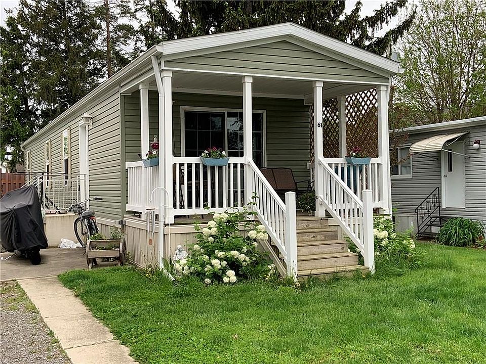 Super nice mobile that has a view of the lake. The two bedroom and single bath with open concept kitchen and living area make for a perfect weekend getaway. Sit on the porch for a view of the lake or on the large patio of a bbq. The mobile has a dock within walking distance available for rent on a yearly basis.