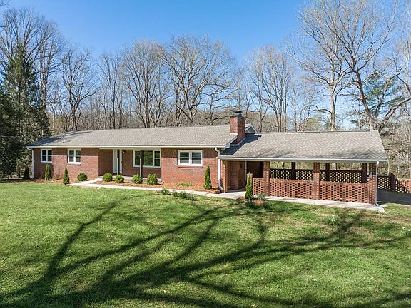 A surprising amount of room & storage in this brick-raised ranch-style home! Just updated w/ NEW roof windows, laminate flooring, granite counters, paint, lighting...The front door opens into the living room with a spacious kitchen & breakfast room with SS appliances, a farm sink, plenty of cabinets & counter space, and sliding doors leading to a large covered porch and open decking. A formal dining room sits on the other side of the kitchen plus a family room with a brick fireplace with a wood stove insert access to the oversized double attached carport. The primary bedroom w/ en-suite are on the main level along with two other nice size bedrooms and a main bathroom. Basement is fully finished with a 4th bedroom, office, bonus room, laundry, full bathroom, large storage room with shelving, and a root cellar. The French doors in the 4th bedroom lead outside to a lower terrace and the in-ground pool with decking. New pool lining & fully serviced. A large portion of the yard is fenced in and mostly level. Great house for a large family or you could put a kitchen in the bonus room in the basement and have guest living quarters. Only minutes from town and easy year round access.