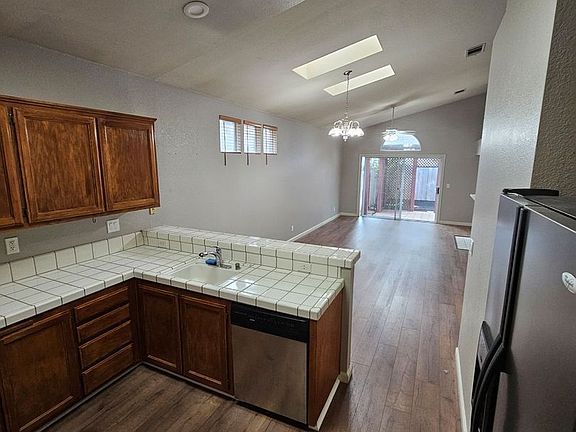 This beautifully designed 2-bedroom, 2-bathroom corner home seamlessly blends elegance, comfort, and functionality, creating a space that feels both luxurious and inviting. Its open-concept layout is perfect for hosting gatherings, enhanced by a striking accent wall that adds timeless character and charm. New hardwood floors flow effortlessly throughout the home, complemented by soaring vaulted ceilings that amplify the sense of spaciousness. Skylights strategically placed throughout ensure each room is bathed in natural light, enhancing the warm and welcoming ambiance. The home's corner location not only offers added privacy but also allows for an abundance of sunlight to fill the living spaces, making this property truly exceptional. Stepping outside, the thoughtful design continues with a spacious front and backyard, offering plenty of room for kids to play or pets to roam freely. A flourishing lemon tree brings a touch of natural beauty, while a pergola provides a shaded retreatideal for relaxing or enjoying meals outdoors. The attached garage, complete with attic storage, adds an extra layer of practicality to this thoughtfully designed home. Combining stylish interiors with serene outdoor spaces, this home offers the perfect balance of sophistication and everyday comfort, making it an ideal sanctuary for modern living. UPON APPROVAL TENANTS MUST PROVIDE RENTERS INSURANCE. *DEPOSIT IS BASED UPON APPROVED QUALIFIED INFORMATION. *PRICE AND AVAILABILITY ARE SUBJECT TO CHANGE WITHOUT NOTICE. QUALIFICATIONS: 625 or above credit score. Make 3x the amount of rent. No evictions. No unpaid utilities No unpaid payments through apartment complexes, or property managements.
