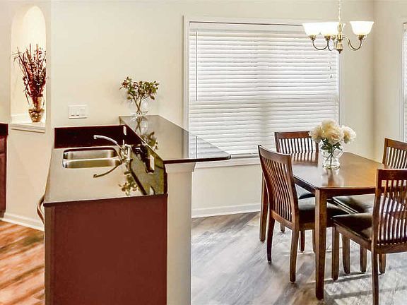 - RoomKitchenFeatures: Granite Counters, Kitchen Island, Pantry, Recessed Lighting, Eat-in Kitchen, Floors-Vinyl, Cabinets-Stained, Bar, Backsplash-Tiled
