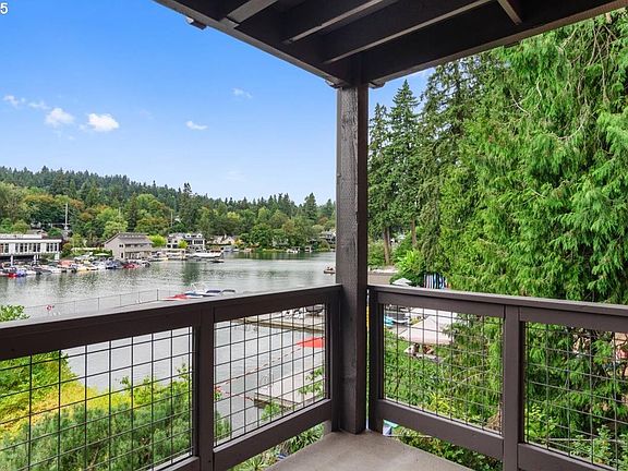 •••SELLER MOTIVATED! BRING ALL OFFERS! SELLER WILL CREDIT THE BUYER WITH ONE FULL YEAR OF HOA DUES!••• Enjoy incredible Lake Oswego views from this light-filled 1 bed, 1 bath second-story condo featuring oversized windows, refinished original hardwood floors and an updated kitchen with granite counters, tile backsplash, newer appliances, and a double sink. The kitchen flows seamlessly to the dining and living areas with crown molding, built-in speakers, and lake-view windows. The bedroom features a ceiling fan, mirrored closet doors, and wood floors. The remodeled bathroom includes a granite vanity, walk-in tile shower, and heated tile floors. This desirable community features landscaped grounds and a shared deck right on the water, all just steps from parks, shops, and restaurants in the heart of Lake Oswego!