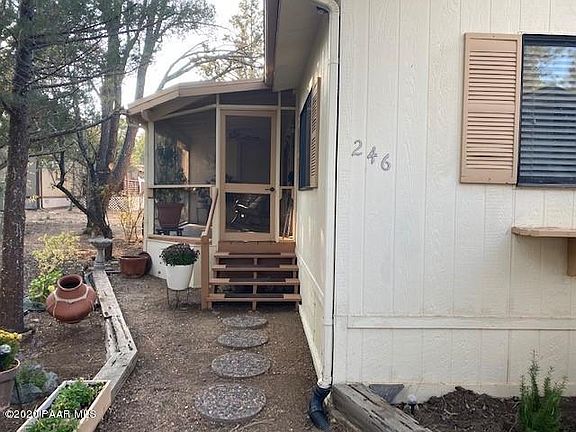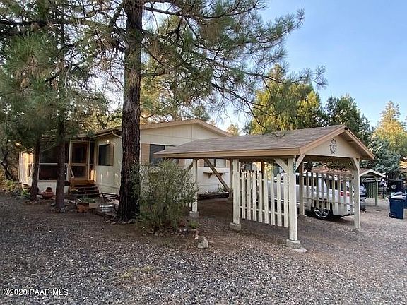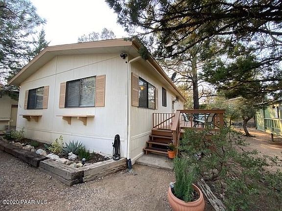 You don't want to miss this cozy move in ready home nestled in the pines of a 55+ Community with leased land. This 2 bedroom home has been kept in great condition with new toilets, 2 yr old washer, and a new evap replaced July of last year. Storage/Workshop offers plenty of storage and an enclosed screened porch to enjoy the beautiful weather on. Close to shopping and downtown Prescott. Walk off the deck into the beautiful Prescott Pines to plenty of hiking trails. Call to schedule your showing today!