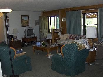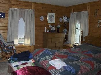 This log home has a great kitchen w raided panel cabinets, island,& a sunroom Tiled 6x6 floors in both baths under the carpet*very large open deck on the back* stream on property** some open & wooded acreage** unfinshed walkout* 3 types of heat, propane