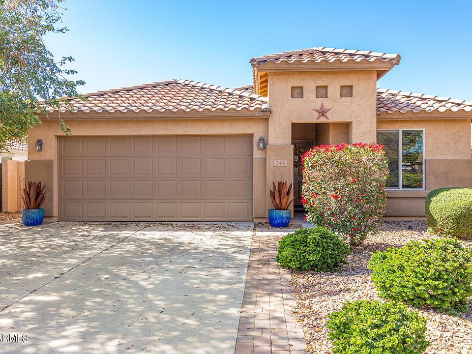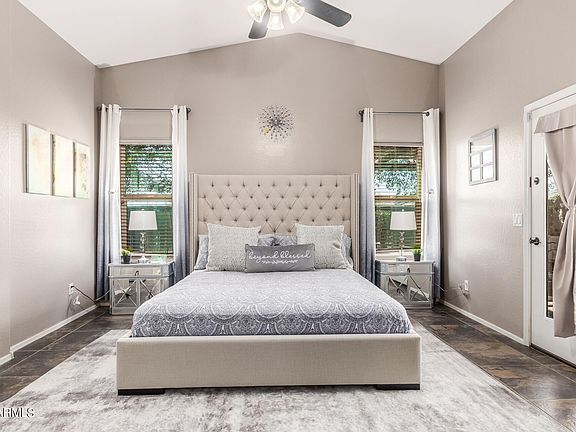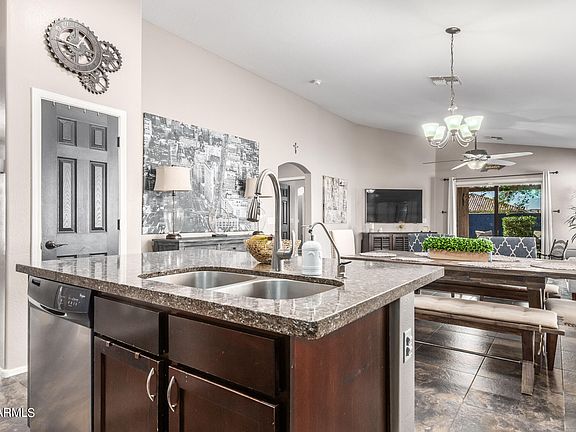 Beautiful 4-bedroom 3-bathroom home with two Master Bedrooms! Vaulted Ceilings, Granite Counter Tops kitchen has subway tiled back splash, Gas Range and oven, under mounted stainless steel sink R.O System for drinking water on the kitchen Island. Staggard cabinets with a 2'' crown molding. Raised panel doors. Home has tile throughout the entire home no carpet. Ceiling fans throughout the home. It also has an open den area or playroom. Linen closet in the hall. Master Bathroom has a Double Door entry, Glass exit door to Back yard patio, vaulted ceilings dual sinks, shower, and private toilet room. Back yard patio has pavers, and an additional patio, there is a synthetic grass dog run on the north side of the backyard. Gas stub out for a BBQ.