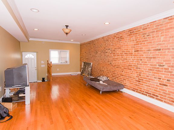 EXTRAORDINARY PATTERSON PARK ROWHOME WITH GARAGE PARKING! Hw floors throughout main level, LR w/ exposed brick & crown molding, sep dining room w/ tray ceilings, Chef's kit w/ granite counters & ss appliances, 3 bedrooms & 1 full bath w/ whirlpool tub on 2nd level, finished basement w/ 4th bedroom or family room & full bath, rear patio & detached garage. Sold As-I! Seller will make no repairs!