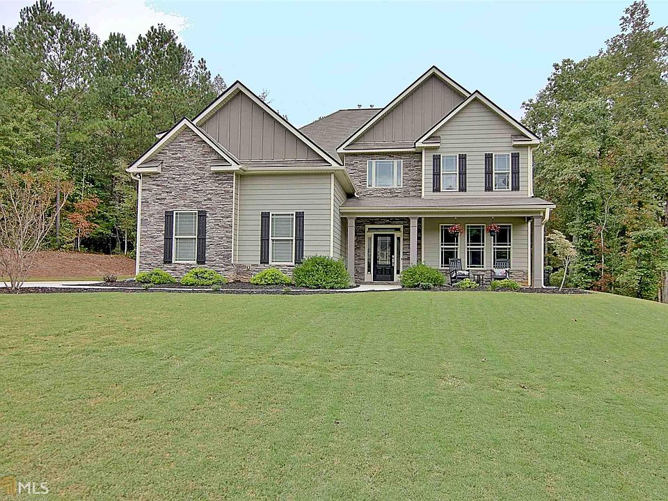 Let us take your breath away! Huge custom built home with pool in friendly, quiet neighborhood-what is not to love*Rocking Chair front porch invites you in to the 2-story foyer*Formal living & dining rooms*Great room with gas log fireplace & coffered ceiling is open to the kitchen & breakfast*Kitchen boasts, stainless appliances, double sized island, granite countertops, upgraded cabinets, pantry, bar sink & pot filler*Guest suite on main*Hardwood flooring in all living areas on main + Hardwood steps & upstairs hall*Amazing-Owner's suite up with vaulted bedroom sized sitting room, upgraded tile bath & tile shower, free standing tub, His & Her divided walk in closet*2 bedrooms for the kids with bath between*Grand bonus room with custom wet bar + LVP flooring*Out back is such a wow with stained wood, vaulted covered porch open to beautiful pool area with cool deck surround, iron look fencing & wooded behind*Spray foam insulation is in the attic & between the garage & bonus room to keep heating & cooling bills down*Fully sodded yard + 3 car garage with laundry sink