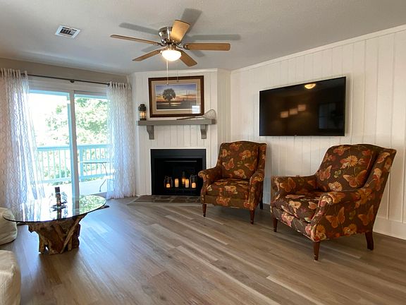 Beautifully remodeled & upgraded 2 Bedroom/ 2 Bath Driftwood Villa on the golf course in Wyndham Ocean Ridge! This spacious villa takes up the entire 2nd floor and has incredible views of the 17th fairway, lagoon & beyond! No details were overlooked including new trimwork, doors, kitchen, appliances, Luxury Vinyl Plank flooring, updated bathrooms, furnishings, fixtures, bedding & more! Open layout with natural light featuring a Living/Dining/Kitchen with wood accent wall, fireplace and sliding glass doors that open out to a large partially covered deck. There's plenty of room to relax & enjoy the outdoors & take in all the views! The expanded kitchen features new white cabinetry, stainless appliances & sink, butcher block wood counters & stool seating! There's a reading nook witha desk for your laptop, a pantry closet & laundry room with new washer & dryer. The inviting Master Bedroom is spacious with a King Size Bed, computer desk, sliding glass doors with porch access & also an en-suite bathroom with Tub/Shower combination. There are mounted flat screen smart TV's in the Master & Living areas. The Guest Bedroom has an ingenious design with a Queen Size Bed alongside specialty Built-in Bunks for multiple sleeping areas! The Guest Bathroom is conveniently located at the hall entrance. Go for a bike ride, play a round of golf or enjoy a meal at Ella & Ollie's restaurant located in Wyndham. Other amenities are available with a recreation pass including pools, tennis, playground, fitness room, putt putt & oceanfront cabana! Being sold furnished with only a few exceptions. This is a good one... COME SEE!