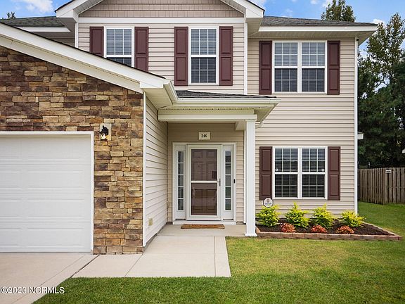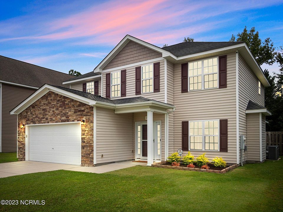This stunning 4 bedroom, 2.5 bath home in Carolina Plantations is well-maintained and boasts over 2,300 ht sq ft of living space. The owner's suite is conveniently located on the ground floor, making it easier for those who prefer to avoid stairs. The suite comes with a large walk-in closet and an ensuite that includes dual vanities, a garden tub, and a stand-up shower. The kitchen, which has been updated with granite countertops and subway tile backsplash that extends all the way to the ceiling, is also located on the ground floor, along with a dining area and a spacious pantry. The dining area is also open to the living room that has large windows for plenty of natural light, and an electric fireplace, for the ambiance of a cozy fire, without the hassle and maintenance that usually comes with. A half bath for guests is tucked away down a hallway. Upstairs, you'll find a huge loft area where the whole family can gather, as well as a laundry room, a full bathroom, and three additional bedrooms. Two of the bedrooms are extra-large, and the third has ample space. The screened-in porch is perfect for enjoying the beautiful weather all season long, and the fenced-in backyard is easily manageable. The home also has a spacious 2 car garage and a large driveway to accommodate a growing family's parking needs. Don't miss out on the chance to see this amazing home for yourself! Homeowner is a licensed North Carolina realtor