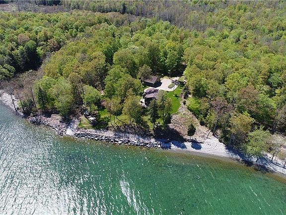 A private, gated half-mile driveway meanders through the trees and by a pond to welcome you home to this exceptional, one-of-a-kind estate on Lake Ontario with 1,680 feet of private lakefront, 129 acres, dream home, 3-season guest cottage and 1,600 sf insulated garage/barn. Every aspect of the 3,626 square foot, 5 bedroom/3 full bath home has been renovated for an upscale and virtually maintenance free lifestyle. Features: Soaring 29' ceiling in great room with 20' of Andersen windows capturing the lake view, stone faced wood burning fireplace, open floor plan with granite/stainless kitchen perfect for entertaining, game room, exercise room, office, luxurious master suite with huge walk-in California Closet, massive deck and patio with outdoor bar, grill and fire pit, large boat ramp, 2 access roads to lake, a 2nd fire pit and screened gazebo at the shore, back-up generator, 7-zone interior and exterior sound system, extensive perennial gardens blooming spring through fall. There is an additional 789 square feet in the finished basement with full egress windows. A true nature lover's paradise...this getaway retreat is only 50 minutes from Syracuse. A spectacular property!!