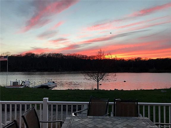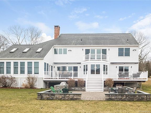 Sweeping waterfront views of Jordan Cove. The western sunset skies are ablaze from the patios and decks. Marvel at the oversized kitchen with two islands with corian and stainless appliances. The combination kitchen/family room provides plenty of room for the cook and the guests 4 bedrooms on second floor with additional space for an office or work out room. So many layout possibilities given 3 interior independent living areas. A 24x32 heated workshop/boat house is a veritable home away from home While you are enjoying the stone covered patio, play or entertain on the level manicured lawn or jump on your boat from your own private dock and motor over with direct access to Pleasure Beach, LI Sound and local waterfront dining spots on the shoreline Conveniently located close to golf, beaches restaurants. Even close to a local market for sandwiches and essentials. It does not get much better than this. Catch crabs and Striped Bass right in your backyard. Watch the reflection of the water shimmer on the walls under the light of the moon, while you listen to the fish jumping. Enjoy gazing at the water from your own private balcony. It is like being on vacation all year round. Start making memories to last a lifetime.