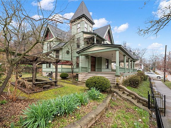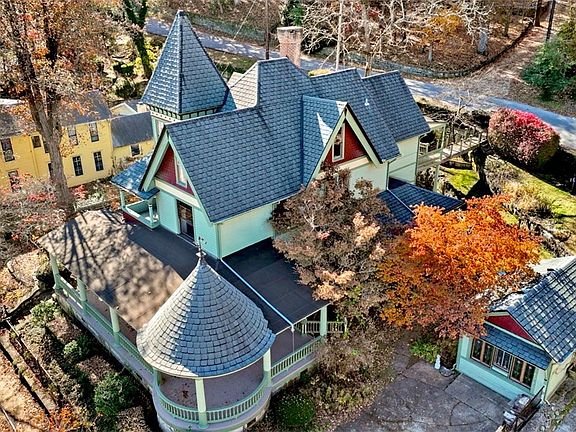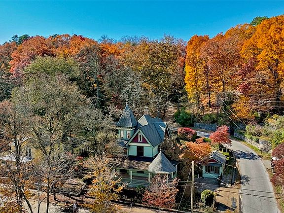 Circa 1892, this Queen Anne Victorian is located just down the street from the famous Crescent Hotel and Historic Downtown Eureka Springs. Completely renovated in 1990, the 6 bed, 4 bath boasts 3 levels of handcrafted woodwork, original hardwood floors and light fixtures, stained glass accents, 2 parlor rooms, formal dining, antique pocket doors, 3 fireplaces, and more! 3,538 sq ft plus additional attic space. Professionally landscaped grounds include koi pond, stunning veranda, and wraparound front porch. Detached garage was converted into a studio for long term rental. Featured in HGTV - this is a true work of Victorian art! New HVAC in 2023. Electrical, plumbing, insulation were replaced in 1990. Roof approx 8 years.