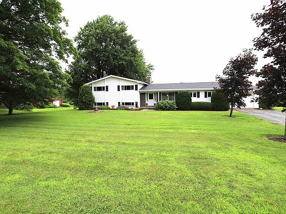 This beautifully landscaped home features a large lot, an expansive floor plan with over over 3,000 finished SF, and tons of recent upgrades! The covered porch and dedicated entryway opens to a massive first floor featuring a large living rm with fireplace and pellet stove, sliding door to the new deck, formal dining, and kitchen w/ hallway and 1/2 BA leading out to the garage. The 2nd floor features 4 large BRs with huge primary BR and remodeled full BA, all new flooring, fixtures, and ceiling fans. The lower level includes a large den w/ wood fireplace and a walkout door to the fenced yard, family rm that can double as an office, and laundry rm. The large unfinished basement includes a bonus rm with pool table included, easily accessible utilities, and stairs on both ends leading into the garage or the finished lower level. The enormous 2.02 AC lot features a meticulously landscaped yard, Koi pond with fish, views of Lake Memphremagog, mature trees, and plenty of flat areas for activities and BBQs. There is an oversized 1-car garage attached. Recent upgrades include multiple bathroom updates, new deck, new hot water heater, new chimney flu liner, new boiler, new oil tank, new water softener, updated electrical, updated plumbing in 2 BRs, new flooring upstairs, new hallway carpet, and new ceiling fans and lighting fixtures in the BRs. All of the heavy lifting has been done and the home is ready for you to personalize and add the finishing touches. This is a must-see!