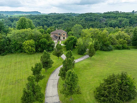 A rare find offering a Galena Territory location with a rural feel! Sprawling 5 bed, 4.5 bath retreat with loads of potential nestled within 19 acres of beautiful rolling terrain featuring lush forest, stunning elevated vistas and gorgeous panoramas of the countryside beyond, all in a private location convenient to all Galena Territory amenities including Owners' Club with pools and Lake Galena. Light and bright main level offers dramatic entry foyer, large living room with lots of windows and access to rear deck, spacious kitchen with center island and gas cooktop, room for eat-in area, and loads of cabinetry that feeds to open dining room with plenty of room to entertain and secondary living room that also enjoys the ambiance of the fireplace, conveniently located powder room, and generous primary bedroom with two closets (one a big walk in) and private bath with double vanity, whirlpool, and separate shower. Head to the upper level to find a mezzanine that opens to an expansive loft-style family room with additional fireplace and access to upper rear deck offering absolutely breathtaking views plus two additional bedrooms with nicely appointed private baths. Walk-out lower-level houses sweeping recreation room, den with gas stove and access to rear yard and fire pit, two more comfortable guest rooms, full bath (not totally operational, at current), hobby room, and laundry/utility room with double door access to the exterior. Two car attached garage with lots of room for vehicles and storage with asphalt drive that offers additional parking. Huge yard space allows plenty of room to enjoy the outdoors and take in the surrounding nature with a paver patio fire pit that has lots of space to relax or entertain. Some trails exist with the potential to carve your own path and take in all the unique vantage points the property has to offer. Location convenient to all amenities of The Galena Territory including Owners' Club with indoor pool, outdoor pool, fitness facility, game room, multi-sport gym, tennis courts and more, access to scenic Lake Galena, and miles of gorgeous trails. Fine and casual dining, 63 holes of golf, and spa facilities of Eagle Ridge Resort and Spa are just minutes away. Zoned for horses. Price reflects property being Sold "As-Is".