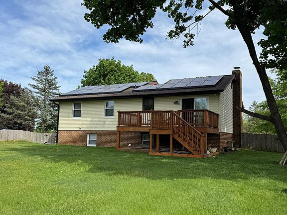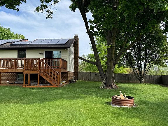 Welcome to your charming split foyer home, nestled on a generous 0.53-acre level lot, perfect for outdoor gatherings and play. 3 spacious bedrooms and two full bathrooms, providing ample space for relaxation and comfort. Updtaed kitchen and baths, chair railings and a cozy fireplace, ideal for creating lasting memories with loved ones. The heart of the home boasts a combination kitchen and dining area, complete with a delightful table space, perfect for casual meals or entertaining. Modern appliances, including a built-in microwave, dishwasher, and front-loading dryer, make daily living a breeze. Enjoy the convenience of a full basement with garage access and walkout level, offering endless possibilities . Outside, unwind on the new deck, surrounded by nature. This home is not just a property; it's a welcoming retreat ready for you to make it your own. Don't miss the opportunity to embrace a lifestyle of comfort and community! Solar Panels Leased NEW ROOF 2025