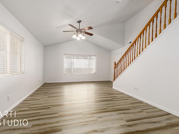 AC unit is on roof, and was installed 2019. Brand new flooring and paint. Fridge, washer, and dryer are included. Fenced, gated enclosure in back yard. Storm door on back door. Covered patio.
