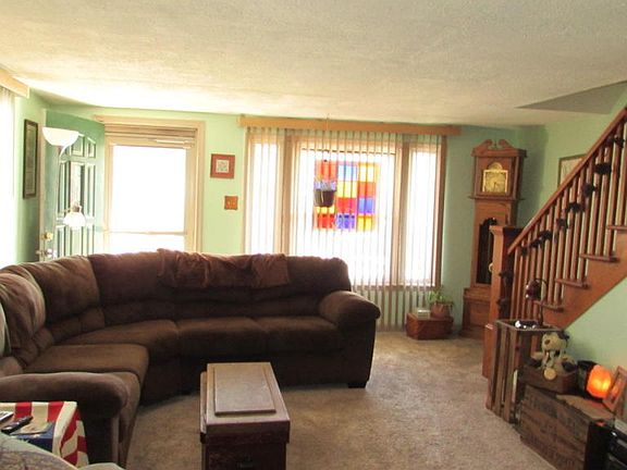 Spacious home on large lot! Once in the front door you'll enter into generous size family and living room areas. Propane fireplace keeps entire home warm and cozy. Follow through to the inviting eat in kitchen area which includes all appliances. There is a large utility/mud room with half bath behind kitchen. 2nd floor offers main bathroom, front bedroom and large master bedroom with sitting area. 3rd floor is also finished and can be 3rd bedroom by just installing heat! Back fenced yard, covered porch with hot tub, 1 car detached garage and small pond complete the package!! All offered for only $72,900