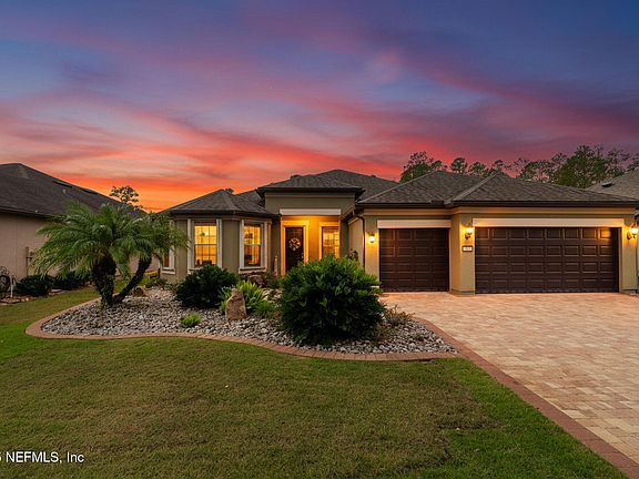 Impeccably maintained by the original owner. Estate size Dunwoody Trail floor plan features 2,490 sq ft located in Del Webb Ponte Vedra 55+ community. This home sits on a quiet 70' pond-to-preserve homesite. Enjoy 3 bedrooms, 3 full baths, & a flex/library with built-ins. No carpet—engineered hardwood throughout living areas & bedrooms, plus diagonal-laid tile in kitchen & baths. The spacious kitchen offers wood cabinets with pull-out drawers, large island & pantry, & ample recessed lighting. Dining area captures beautiful natural light & peaceful water views. Crown molding throughout, newer A/C & water heater, plus hurricane shutters for all windows. The 4' extended garage includes epoxy floor, screened pull-down doors, & golf cart space, plus plenty of room for storage. Large laundry room with sink. All appliances, ceiling fans, & water softener convey. Don't miss your chance—come see how this home perfectly blends style, space, & comfort. Move-in ready! Features & Upgrades galore! See Features and Benefits page for the full list.