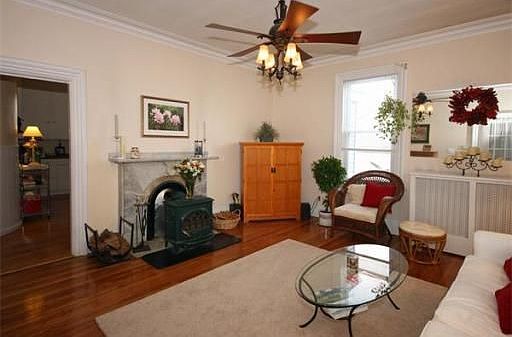 Charm and grace abound in this elegant turn of the century Mansard Victorian. Step back in time with 9.5 ft. ceilings, medallions, marble mantel, hardwood floors, spacious living room with bay window and wood burning stove. Eat-in-kitchen with many updates, granite counter tops and SS appliances. Lovely dining room with curved wall and decorative ceiling. Sun-filled bedrooms, garden area, parking for two small-med cars. Convenient to transportation and Brighton Center.