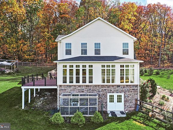 5 year new J.A. Myers built home located on a picturesque 7.15 acre lot. Situated back a long driveway, off the main road, this breathtaking 2 story home is just waiting for you and your family. You will love the open floor plan, all the oversized floor to ceiling windows for the natural lighting and the spacious rooms. The home has 3/4 inch hardwood floors, 9 Ft. ceilings, Great Room, tiled Sunroom, Kitchen with granite counter tops, double oven, island w/seating area, down draft cooktop, recessed lights, S.S. appliances, 1st floor laundry, den and that's just the first floor. The upper level has a large primary bedroom w/a private bath, tub and walk in shower, 2 other bedrooms and another full bath. Located minutes from Codorus State Park. The unfinished basement is walk out through a set of double doors. This home has 2 HVAC systems and a water softener system. Finally you will find a trex deck off the rear of the home w/stairs to a large patio. Approximately 2.8 acres are fenced. this home has great privacy but is still close to nearby shopping, restaurants, and stores. conveniently situated for the Maryland or Pennsylvania commuter.