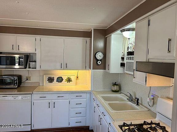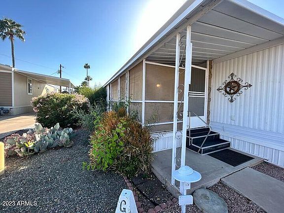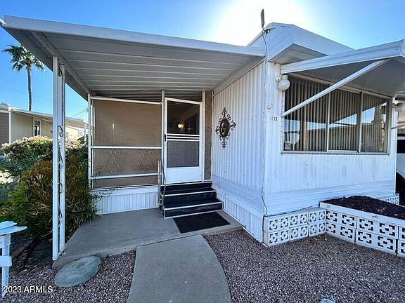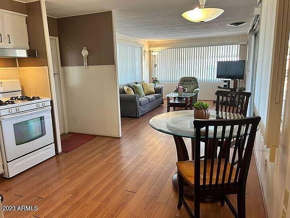 Introducing an exquisite real estate opportunity: a charming 1965 NASHUA model by AMPCO. This fully furnished 2-bedroom, 1-bathroom home is move-in ready! Discover the Trail Riders Ranch, a meticulously maintained and gated 55+ community offering an array of amenities. Delight in the clubhouse, mini-golf course, shuffleboard, coin laundry, refreshing pool, and various activities to keep you engaged. Conveniently located near the bus stop, this community is within walking distance of Safeway and just four miles away from downtown Mesa. For seamless access to Phoenix, the light rail station at Main & Gilbert is easily accessible.