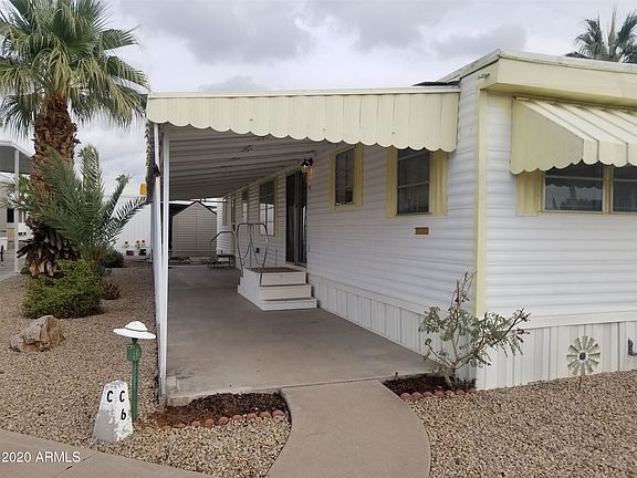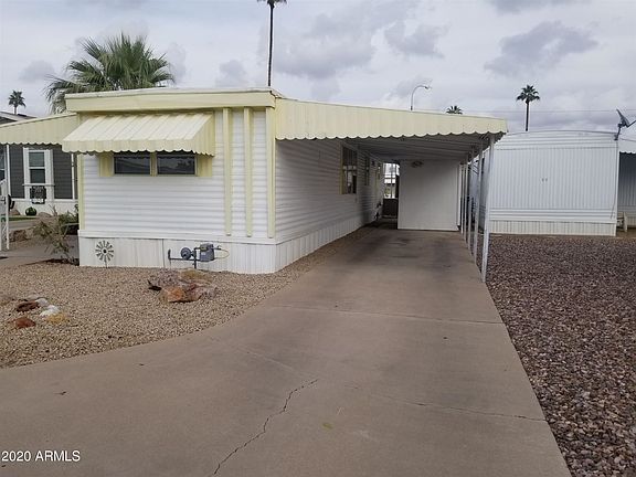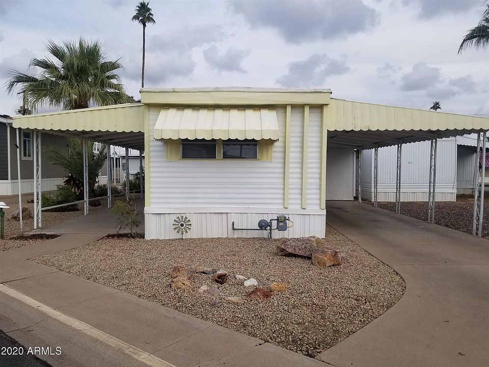 Own this adorable home today! Recently updated 2 bedroom, 1 bathroom home with two car covered parking in Trail Riders Ranch. Trail Riders Ranch is a gated, 55+ resort, styled community in the heart of Mesa. Take a dip in the heated, community pool and spa or join in a game of billiards or cards in the clubhouse. Meet your neighbors in the exercise room or while out on the putting green. Get out and play pickleball, bocce ball, or shuffle board. Maybe you just want to relax on your covered patio Community provides on-site management/maintenance and wide, paved streets. Located close to shopping, entertainment, Sloan Park (Go Cubs Go!) and freeway access. Price is for home only. Land lease of $569/month required. Pets are not allowed in this area of Trail Riders. Welcome home!