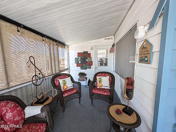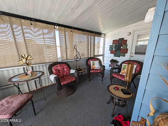 The outside space is perfect for entertaining and it's one of the largest lots in the park! The screened-in porch which has additional sunshades is ideal for enjoying Arizona living! There are two sheds (14'x8' and 9'x6') that provide ample room for tools, outdoor equipment, gardening supplies, bicycles, and seasonal decorations. The corrugated metal screen on one side of the tandem 2-car carport provides shade and privacy. And if you think you need more storage, there's also a large closet in the carport area and more room underneath the carport stairs!