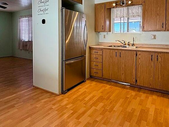 Well kept home with covered porch in the gated, 55+ community of Trail Riders Ranch! Features include laminate floors in living areas, carpet in the bedrooms,, step in shower with grab bars, electric glass top stove, fridge and the washer and dryer A new high efficiency AC installed 2020, new water heater 2023 and roof redone 2024. There are 2 storage sheds, one can be used as a workshop. This home is ready for you to make it your own. Agent/owner