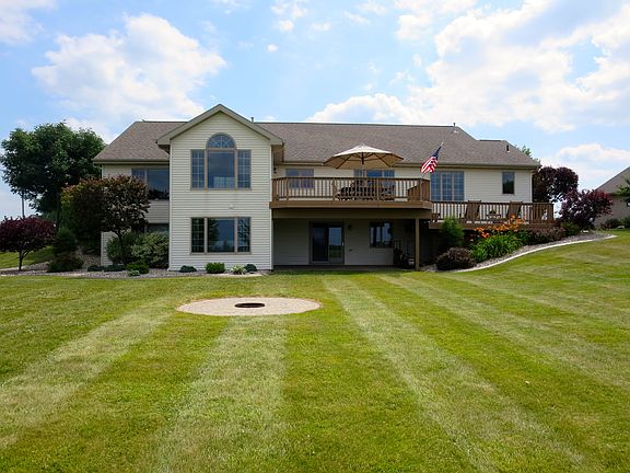 Beautiful home on Eagle links Golf Course. Full walk-out finished basement. Large gourmet kitchen. Two fireplaces. Hot tub and two decks. Large brick patio and round brick fire pit. 1 acre city lot. Hardwood, tile and carpeted floors. Just updated. Large closets with multiple walk-ins. Lots of storage. The large three-car garage currently holds four cars, and a motorcycle. The garage is also finished & heated with additional stairs to basement. Anderson windows. country life, with all city of Kaukauna amenities. Call Renae: 920-850-1040 for a viewing.