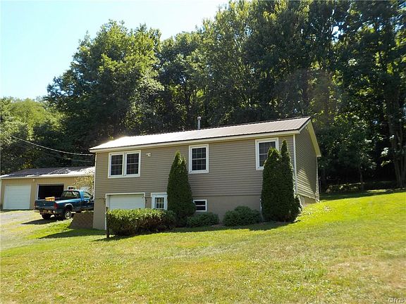Country private 4 Acres ! 4 Bedrooms, 2 Full Baths, Ranch w exlarge Living room w pellet stove. SS appliances included. Eat in kitchen , formal dining room. Attached 1 car garage under house and 2.5 detached garage. Patio, decks. Must see !