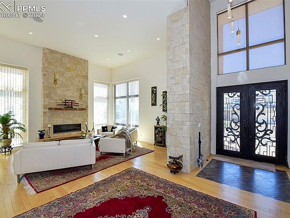 This Amazing home awaits your arrival . From the time you approach and note the unique architecture, the custom Buffalo Forge steel entry door and enter to the 18-foot soaring ceilings you know you’re in a truly custom home. the Maple flooring, Pella Windows, Eldorado Coastal Reef Stone, the use of oversize window walls to let all that Colorado sunshine in and to view all that Colorado offers. Your inviting Dining room allows for indoor or outdoor dining and special gatherings. The sliding doors open onto Covered and open entertaining areas, fire pit, water fall with speakers to add your special music to many memorable evenings. The Kitchen is thoughtfully designed with high end Jenn Air appliances, walk in pantry, oversize counter island with stone counters, custom Maple cabinetry, 12-foot ceiling and a lot of natural light. The Master Retreat includes a large walk-in closet, its own private deck to enjoy those Mountain Views and City lights, a double-sided fireplace to enjoy while you soak away the days stress in your large tub, just a part of the 5-piece bath with numerous upgrades. There is a main floor laundry, oversize entry closet just off the 3 + car garage. As you move upstairs on the custom designed floating steel staircase you have an upper level that can serve as private retreat. There is a both a guest suite with bath and walk in closet, and an expansive Office space that’s terrific for remote work from home, zoom calls or large enough to be utilized by multiple family members. The lower level is perfect for entertaining or family gatherings with built in bar, wine storage fireplace, walkout to patio, space for a media room, 2 large bedrooms with their own bathrooms, extra storage. You'll notice how quiet this home is thanks to the use of Insulated concrete form construction. Quiet cul de sac location and oversize lot allow for your own sense of personal space.