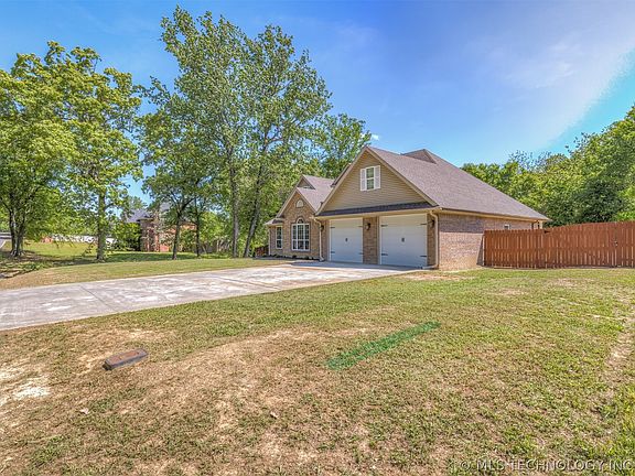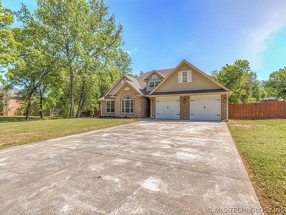 MUST SEE! Absolutely gorgeous home in sought out area in Sallisaw. Tons of natural light and large windows that offers views of woods in front and back of the home that sits on corner lot and is almost 1/2 acre. 3 bd, 2 bath with flex room that could be 4th bedroom or office/play room. Large kitchen with granite countertops, new appliances and over- sized island with second sink opens up to living with vaulted ceilings. Split floor plan has large primary suite with tons of room, extra high ceilings, and beautiful bathroom with jetted tub and large walk in shower. Large deck on back with beautiful view has plenty of room to entertain or enjoy some peace and quiet while having your morning cup of coffee. Wood tile floors throughout (carpet in bedrooms) and extra tall ceilings with 8 ft doorways give this house a very roomy feel. Have a boat, trailer or camper? Fence has large swinging gates on two sides. Floored attic for extra storage . Within 30 minutes of 3 lakes and close to Fort Smith. Call today to view this beauty!