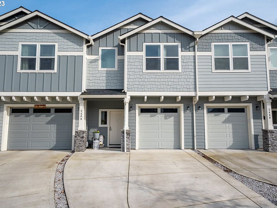 Multiple offers received. Very clean and nearly new townhouse in Green View Estates.3 bdrms, 2.5 baths + loft. Blueberry bushes in bkyrd w/ extended concrete slab for entertaining. Rolling brn door. Ovrhd storage shelves in attached garage.Plenty of add'l parking in drvwy. High ceilings; Vaulted in primary suite w/ceiling fan.Quartz countertops. Gas appliances. Ldry rm upstairs. Furniture, patio furniture and decorations are included unless requested to be removed. Seller is a licensed realtor in OR & WA. 2-10 home warranty provided by seller.