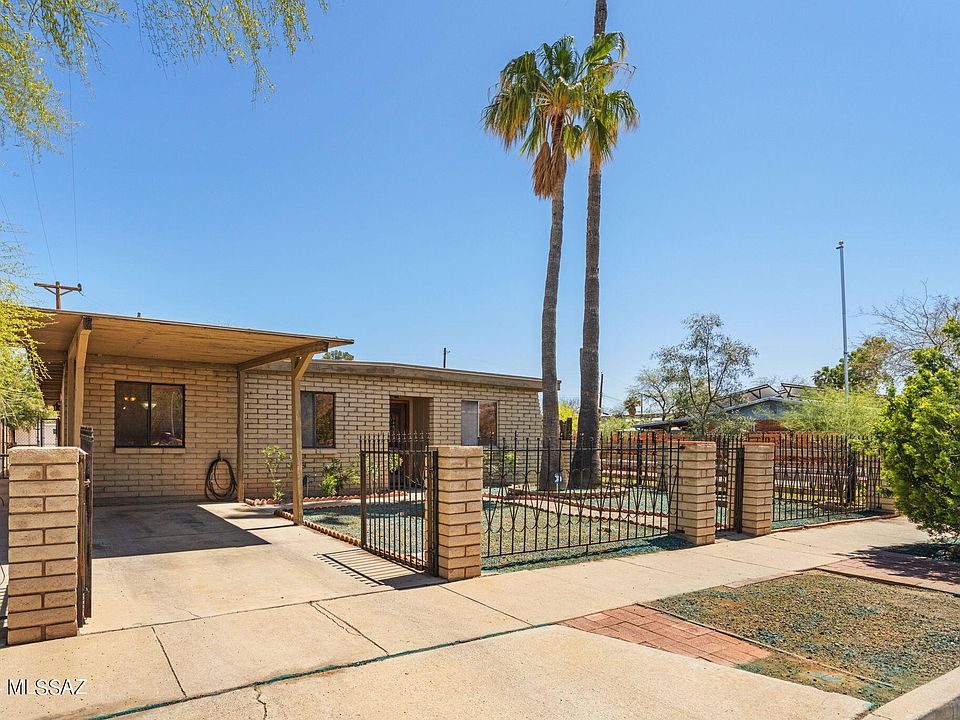 Seller offering $5,000 credit to buyer with acceptable offer! Nestled in the heart of Central Tucson lies a rare treasure, featuring a 1350 sqft, 3-bedroom, 2-bath residence in the Oak Flower District neighborhood. This home combines comfort and style in a serene environment, conveniently located near the Botanical Gardens. The backyard is a private oasis with a separately fenced pool & delightful ramada area, perfect for outdoor gatherings and relaxation. Low-maintenance landscaped front and back yards showcase mature palm trees & palo verdes for ideal for unwinding. The beautiful brick construction exudes effortless style, while offering thermal properties that, along with the HVAC & Swamp Cooler units, help regulate internal temperatures, ensuring year-round comfort. The interior features a separate living room and family room, seamlessly connected by the kitchen and eating area, creating an ideal space for socializing and daily living. Stainless steel appliances, along with a washer and dryer, enhance both the functionality and elegance of the home. Ceramic and Saltillo tile floors throughout the residence provide a blend of charm and durability, adding an organic touch that harmonizes with Tucson's environment.