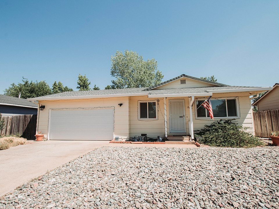 I'm cute and I know it :) My light yellow exterior shines like a ray of sunshine on a beautiful, sunny morning. The small covered front porch sends a welcoming message to visitors. The oversized area off the driveway allows room for additional guests, toys or extra landscaping. The drought tolerant front yard creates a low maintenance yard.Inside you will find a cozy, but slightly spacious living area with a tucked away kitchen featuring warm painted grey cabinets, a dishwasher to help with easy clean up, a cooktop stove and a refrigerator to make your move a little easier.I invite you to visit all 3 rooms, perfectly sized for bedrooms or an office. My master suite is spacious while still allowing room for a walk in closet & bath.My backyard has a covered patio and room to create