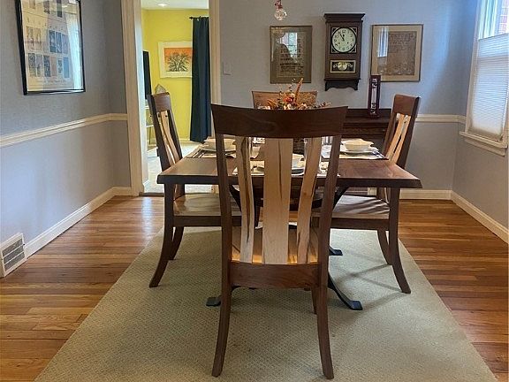 Gleaming hardwood floors with a bay window in living room exudes a classic charm with a touch of warmth and elegance. The good size dining room offer you plenty of space for family dinners or entertaining your guests. First floor attractive newly carpeted family room has sliding doors to the patio, deck and back yard. An updated crisp looking eat in kitchen will be a pleasure to everyone. It has designed porcelain tile floors, coved high ceilings, beautiful cherry Kraftsman cabinet with lite glass doors, plus a row of cabinets in the eat in space, and more cabinets and windows looking over the back yard. A half bath completes the first floor. The second floor has three good sized bedrooms, new carpeting, coved ceilings, and good storage in each room. The crisp