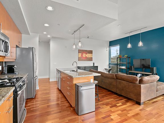 Spectacular condo in LoHi for rent Soaring ceilings, open floor plan, floor to ceiling windows fill the space with light. Easy access to highways- GREAT LOCATION! Close to Zuni Street, pizza, bars, 32nd street and much more. Two bedroom, two bath including large master with ensuite and huge walk-in closet. Modern stained concrete and eco-friendly bamboo flooring. Massive balcony with city and mountain views. Unique building with only 20 homes, includes community BBQ, fitness center, controlled access, enclosed dog run, and 1 underground heated parking space. Very comfortable home with cooking supplies. Personal grill on balcony with outside table and chairs. Great balcony space for gardening, plan on all day sun! Full Kitchen. 2nd room can be used as an office or bedroom. Large closets. Also, ANIMALS welcome, dogs of all sizes, cats, no problem. The space is equipped with kitchen supplies and some furnishings, that can be used or removed at your wish. Enjoy easy access to parks, Sloans lake, restaurants, shops and clubs in LoHi and downtown. Location is amazing! Please email to schedule a showing today! Tenant pays utilities (electric, etc, any additional amenities). No smoking please. Pets allowed. Minimum 6 month lease. Tenant pays utilities (electric, etc, any additional amenities). No smoking please. Pets allowed. Minimum 6 month lease.