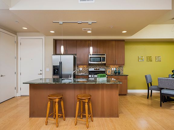 Simply Wonderful! Perfect location in Highlands offers community living and urban delights! Small 20 unit building with its own private dogpark,fitness center,heated underground parking & storage, and community deck w/BBQ. This beautiful unit has a wonderful south facing balcony with city views.Sunny& bright! Designer finishes adorn the home.Bamboo flrs,granite counters,Gas range,vessel sinks, soaking tub. Its a perfect home for a wonderful life, in the heart of a most coveted neighborhood!