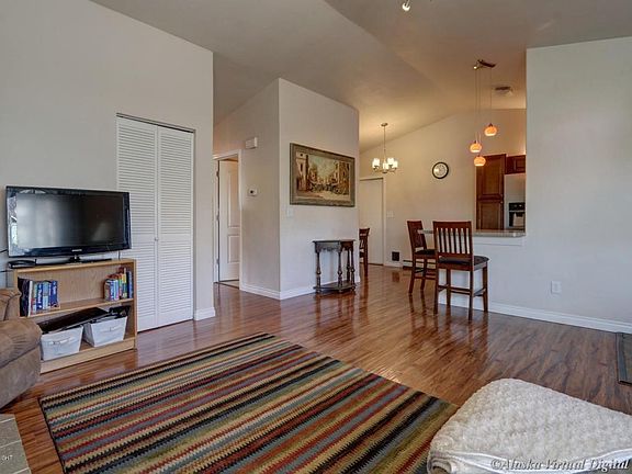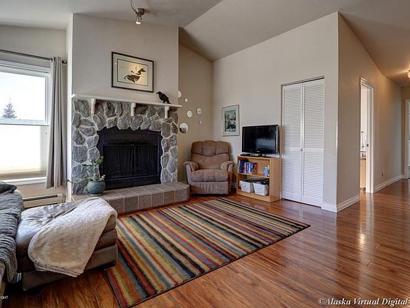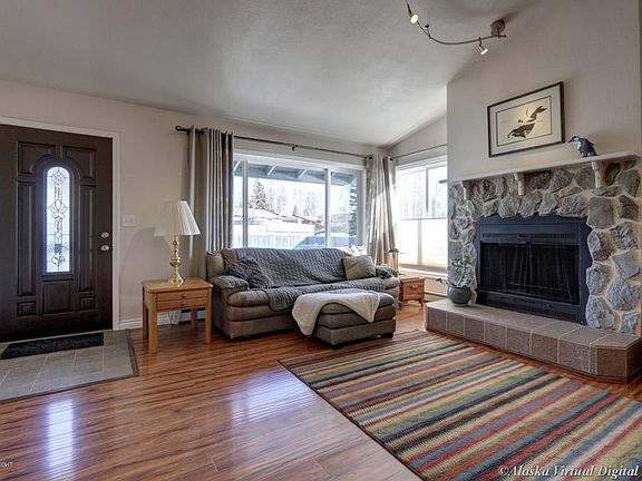 Updated, South Anchorage ranch home with mountain views, conveniently located near schools and shopping. Laminate flooring, vaulted living, open floor plan with a huge south facing deck off the sunlit master bedroom are but a few of the features. Others include, oversized garage, extended parking pad, fenced yard, gas range, newer windows all nested away yet close to everything!
