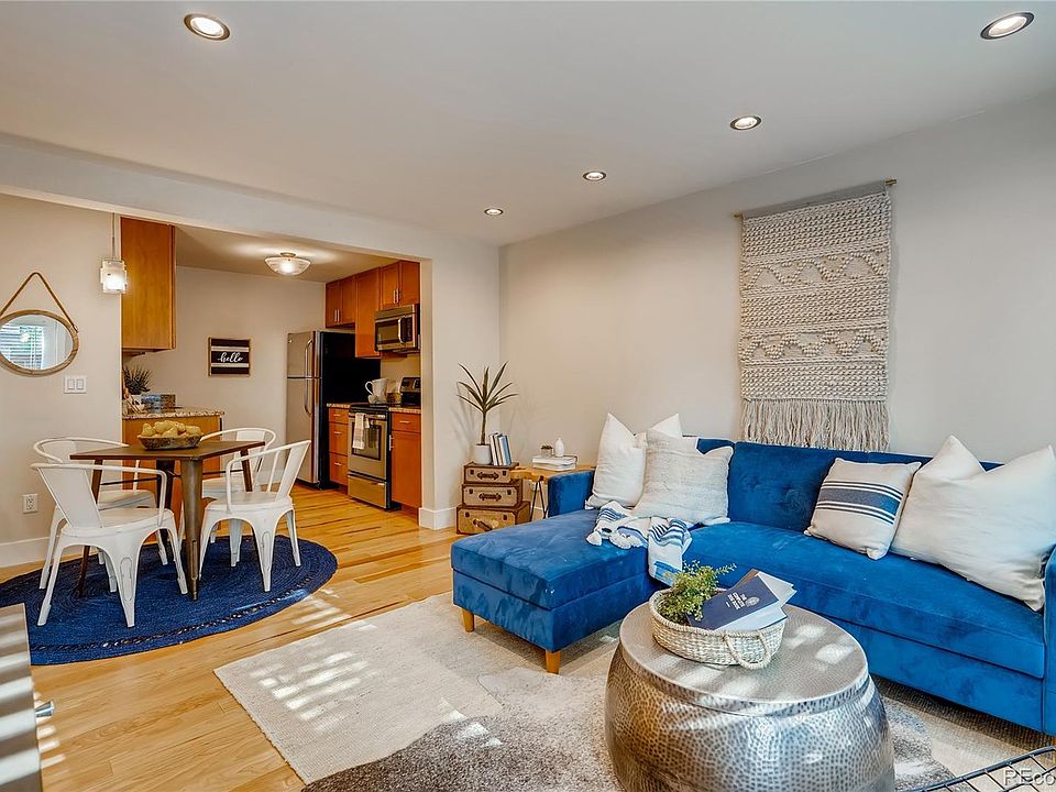 This quiet, cozy unit in Highlands boasts natural light and undeniable charm. The hardwood floors and outpour of sunlight make this beauty one for the books. The kitchen features granite countertops, stainless steel appliances, and a designated space for dining. The in-unit washer and dryer means convenient laundry days, and no separate trip to the laundromat. The unit provides an additional room, which can be used as a bedroom, study, exercise room - the possibilities are yours! Hopefully you enjoy prime location because this stunner is just walking distance from all the great LoHi bars and restaurants. Not to mention it comes with a private storage unit and parking spot. Overall, very well maintained. Entire unit was re-painted on Monday 8.24.20.