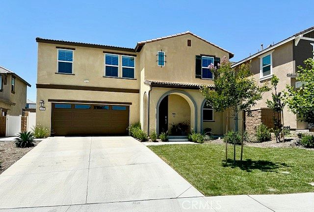 Better than new and ready to move in! No need to wait for the builder! 2-story Residence 3 Model in the new River Ranch Community at Ridgewater, which was one of the first phases built. This Gorgeous Home was purchased New in 2022, then Upgraded with More upgrades than the builder offers! Landscaping; Cement Patio & Cover; Whole House LifeSource Water Filtration System; Instant Hot Water at Kitchen Sink; Quartz Countertops; Plantation Shutters; Luxury Vinyl Flooring; Storage Racks in the finished, attached Garage; Ring System with Exterior Cameras, recessed LED lighting and fixtures!(See Supplements for list of Extras) No rear neighbor and private backyard with pet friendly grass. Feel the Comfortable Elegance as you walk through this Beautiful Home! The Sprawling Kitchen has Tons of Counter & Cupboard Space, large, walk-in Pantry & Open to the Dining/Family Room! Downstairs Bedroom for Guests, or Office! 3 more Spacious bedrooms surround the Loft upstairs, including the Huge Master Suite with a Generous Walk-In Closet and Private Bathroom! Convenient Upstairs Laundry Room! Tons of Light throughout! Built with Energy Efficiency in mind with Solar (assumable), Tankless Water Heater, and Energy Efficient Stainless Steel Appliances! The River Ranch Community includes a Rec Center, Pool, Spa, onsite Parks & Playgrounds, Including a Dog Park, and Walking Trails! Renaissance Marketplace is just moments away, and the Shandin Hills and Sierra Lakes Golf Clubs are also close by. Easy access to I-210, I-215 and I-15!