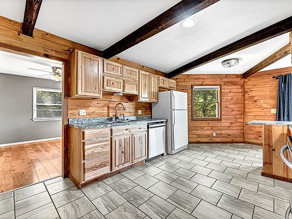 Lake living at an affordable price! Quick, easy drive from NWA to this beautiful 3 bed 2 bath home sits on a gorgeous 1.2 acre corner lot in the sought after Village of Emerald Beach! 400 yds to the water and a 2 min golf cart ride to the Community Center complete with pool, tennis courts and basketball court! Inside you'll find a beautiful wood beamed kitchen with natural stone and a woodburning fireplace in the den. Formal dining room or office is off of the large living area with a wall full of windows! Then down the hall for laundry room, Full bathroom, 2 more bedrooms and the primary bedroom complete with a master en suite! Head outside off of the kitchen to a nice deck overlooking your beautiul back yard with a chicken coop if you desire! There is a covered space for your boat as well! Brand new roof and HVAC! Welcome home!