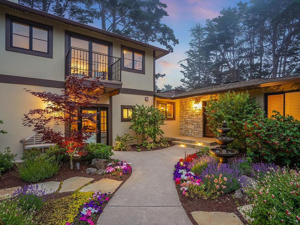 NEW PRICE!!! STUNNING home, in a great neighborhood, with every attention to detail. Storybook garden. Situated on a fenced,1/3 acre, this beautiful home, has a separate office & features numerous upgrades. Newly remodeled kitchen w/ butler's pantry, & private 780 sq.ft, luxurious primary suite, w/spa bath, & wrought iron Juliet balcony, w/peek of ocean. Possible 2nd primary suite on main level. Spacious living room, w/ hickory floors & stone fireplace, light-filled dining area w/ skylights, cozy family/game room w/separate entrance & many built ins. Flexible floorplan. Dual pane windows, gutters and roof replaced in 2016 and even a dog run! Large 2-car garage w/ ample parking for guests, custom epoxy floors & an abundance of storage cabinets, a car buff's dream! An 800 sq.ft. Trex deck w/an outdoor fireplace/grill, perfect for gatherings & star gazing. Mesmerizing sunrises & sunsets. Easy access to and from Highway 1. Coveted Carmel School District. Don't miss this opportunity!