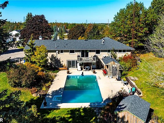 Endless Possibilities!!!!    Spacious walkout bungalow on over 14 acres in Mono, offering close to 3000 total sq ft of finished living space with five bedrooms, two bathrooms, and a walk-out basement out to the massive heated Saltwater pool and deck area! Recent updates include quartz counters, new flooring, and fresh paint throughout. The property stands out with a large saltwater pool for outdoor enjoyment, a versatile barn with income generation and 10 stalls, additional large 50x30 shop space   with multiple uses, and wide-open acreage featuring fenced paddocks, a half-mile racetrack, outdoor hockey rink and a spring-fed pond, paddock space. Located on a paved road just minutes to Orangeville this home combines modern living with exceptional rural potential.