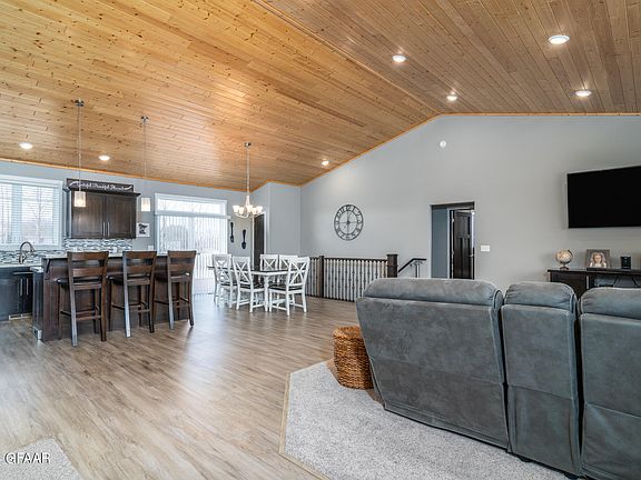 Immaculate 5 bedroom,3 bath home is full of high end finishes! Beautiful primary suite has 2 walk in closets, free standing soaker tub, & separate walk in tiled shower. The kitchen features custom cabinets, a 2 tiered island, & large vaulted ceilings in the main living area. Family room in basement provides for a second kitchen area which makes it perfect for entertaining! No detail left undone! The attached triple stall garage is heated and finished with a floor drain and utility sink. The home features an ICF foundation and has dual heat - 3 zones for floor heat, gas forced air furnace, and a heat pump for heating/cooling. Enjoy the beautiful large lot (just under 1 acre) while sitting on the deck in backyard. Schedule your appointment today to check it out!