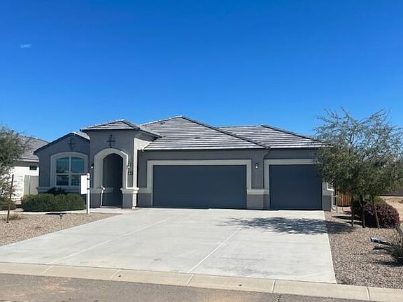 Come take a look at this fantastic opportunity to own the completed move-in ready Sanctuary model home at Crestfield Manor! This stunning single level home with 2,122 square feet and 4 spacious bedrooms offers more privacy with having no neighbors behind you. The upgrades like granite countertops and 20X20 ceramic tile add a touch of luxury. With this home having a 3-car garage and spacious lot, it would be great for someone looking for comfort and style. This home includes smart home technology, upgraded desert front & backyard landscape with artificial turf and pavers, blinds, 9' flat ceilings and more! This community is a hidden gem with private park areas and all single levels!