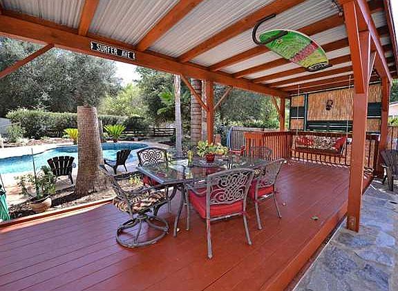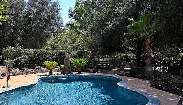 In law quarters-Resort style with inground gray bottom pool and covered patio for entertaining. Parklike, private setting with mature trees on a cul de sac, backs to open space and nature trail. Room for horses and boat or RV. Granny flat plus split floor plan. Features include wood flooring, see through FP, skylights and vaulted ceiling. Kitchen has pantry and stainless appliances. Handicap friendly.