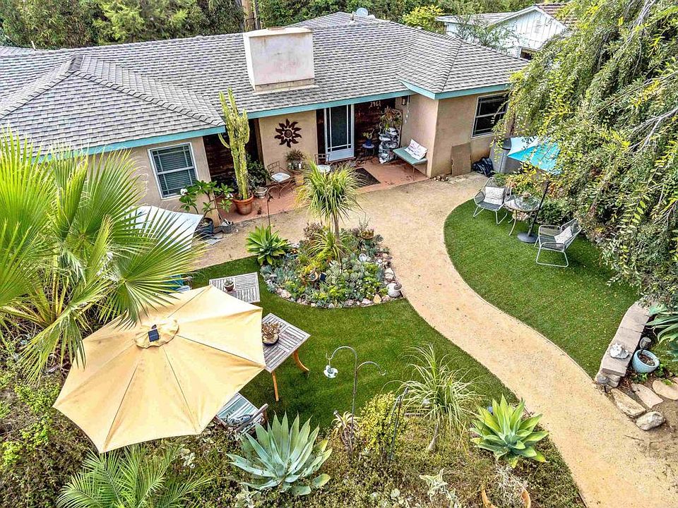 WALK to The Carlsbad Village and the BEACH! Are you tired of sterile flips? When you walk through the front gate, you can feel the peace from a space that can insulate you from a busy world. The charm & character of this home reflects the history, artistic and musical influences of the generational family that created it. Original hardwood floors, arched doorways and warm colors make this house a home. There are two bedrooms and an office which could easily be used as a craft/art studio. A remodel in 2003 created an island kitchen with solid cherry cabinetry, an additional bathroom with a spa tub, and laundry area. Electrical, plumbing, roof and some windows, doors and flooring were replaced at this time. Heating and A/C are supplied by 4 mini-splits. The Living Room with fireplace opens to a large covered patio and yard for outdoor dining and family gatherings. City of Carlsbad zoning is RD-M ( Residential Density Multiple). A second story with lagoon views? Seller has plans available to enclose the back patio. ENDLESS possibilities and a FANTASTIC LOCATION!